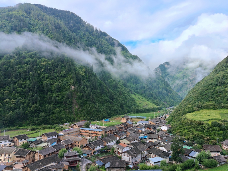 在幫扶資金支援下,黃龍鄉率先推進基礎設施提升與村落風貌改造。2022年起,松潘縣投入830萬元對三舍驛村主街45戶民房進行立面改造,融入馬幫浮雕、藏羌紋飾等文化元素,實現“一院一特色”;同時投入400萬元浙江援建資金實施旅遊補短板項目,建成旅遊便道、遊客休息區及象徵兩地情誼的“桐鄉亭”。昔日風貌陳舊的小村,如今青瓦木樓連片、紅燈高挂,成功獲評“國家傳統村落”與“省級歷史文化名村”。
