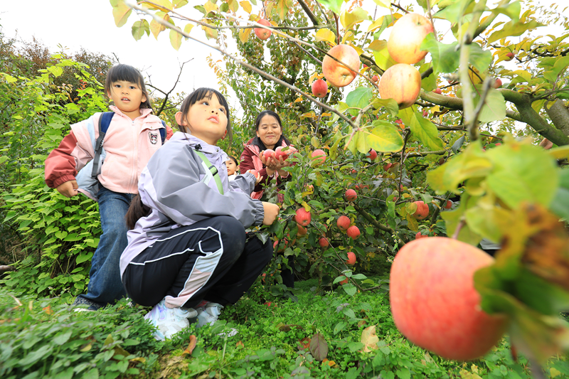 四川茂縣:秋假首日兩千遊客進村來 採摘遊帶“紅”冰糖心蘋果