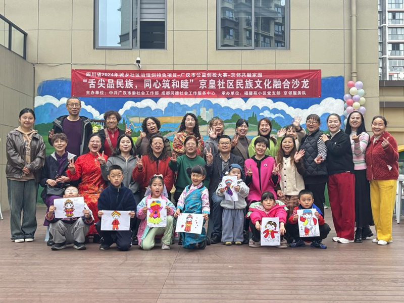 11月12日,德陽市廣漢市漢州街道京皇社區議事平臺熱鬧非凡,“舌尖品民族同心築和睦”民族文化融合沙龍活動在此舉行。這場由中共廣漢市委社會工作部、成都同德社會工作服務中心主辦,廣漢市漢州街道京皇社區攜手京鄰服務隊承辦的活動,是四川省2024年城鄉社區治理“創特色”項目-廣漢市公益創投大賽“京鄰共融家園”的核心環節,以美食為媒、文化為橋,吸引漢族、土家族、藏族等多民族約60名居民齊聚,在歡聲笑語中鑄牢中華民族共同體意識。