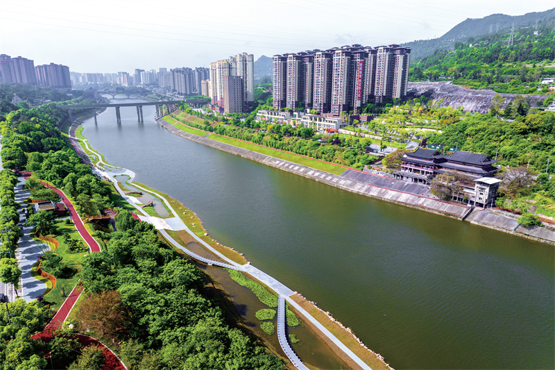 圍繞“岸綠、景美”的管護理念,對渠江(巴州區段)沿岸實施系統生態整治與功能提升。統籌推進巴河大佛寺至李家灣閘壩段兩岸約30公里岸線的生態修復與景觀提升,已建成“巴山夜雨主題廣場”等多個特色景觀節點,構建集生態防護、文化展示、休閒功能于一體的河濱生態廊道;實施張家河生態修復項目,改善岸線2公里,通過清淤疏浚、控源治污等手段持續優化水質,實現水環境“清起來、美起來”;新建10公里城市步道,有機串聯巴河、張家河、津橋湖等自然與文化節點,構建多層次運動休閒網路,既服務賽事需求,也讓沿岸居民盡享“推窗見綠、出門親水”的生活品質。如今,巴河沿岸場鎮整潔有序,咖啡館、文創店、運動場、主題公園等業態蓬勃發展,賽事期間沿岸休閒營業額同比增長45%,城市宜居指數持續攀升。
