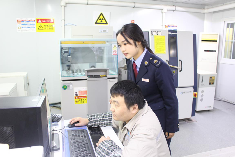 稅務幹部走進生産車間,實地了解企業生産運營情況。