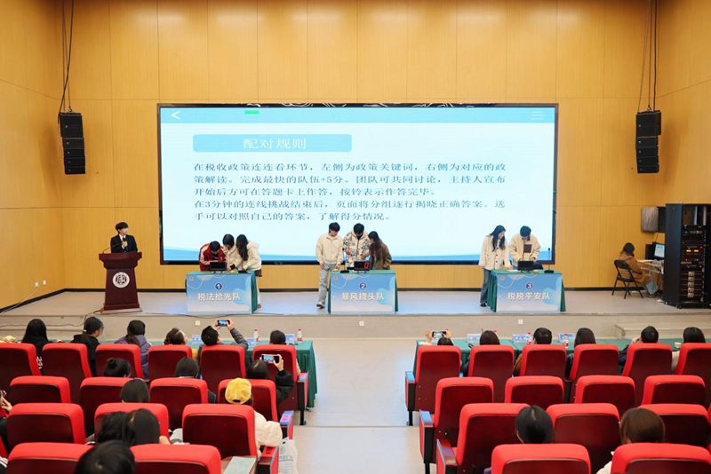 稅法知識競賽將本次普法活動推向了高潮。通過“稅收政策連連看”必答題、“稅法知識”搶答題、加時題三個精心設計的環節,為稅收知識的傳播搭建了趣味互動的平臺,題目涵蓋增值稅、個人所得稅、企業所得稅等各類稅費政策,由今年新招募的大學生稅收普法志願者擔任隊長,組成3支隊伍9名選手同臺競技,最後經過多輪激烈角逐和專業評委公正嚴謹的評審,根據累計得分宣佈獲獎名次,為參賽選手頒發了獲獎證書。