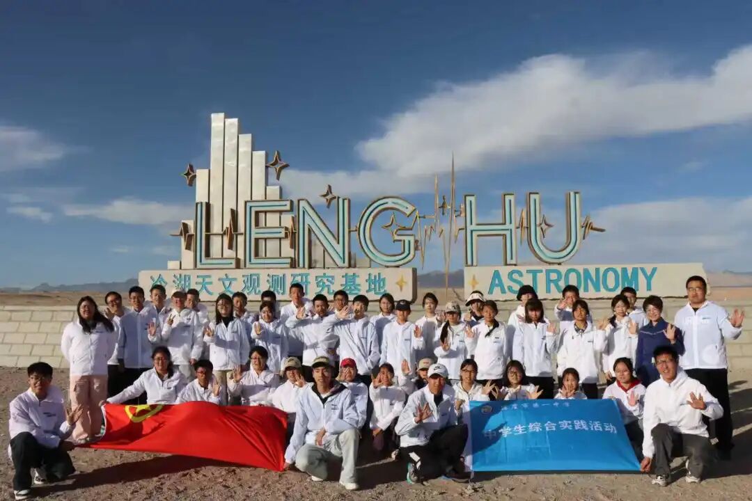 在天文探索環節,冷湖天文觀測基地的專業天文臺成為師生們的“第一課堂”。走進天文臺內部,巨大的天文望遠鏡、精密的觀測設備讓學生們目不暇接。專業科研人員通過生動的室內理論課程,從太陽系八大行星的運作規律,到恒星演化的生命週期,用通俗的語言將複雜的天文知識娓娓道來;夜幕降臨時,師生們又來到戶外觀測平臺,在科研人員的指導下調試設備、尋找星座。此外,師生們還先後走訪了冷湖石油小鎮遺址與五號基地:斑駁的廠房墻體、銹跡斑斑的抽油機,無聲訴説著這裡曾經作為西北工業重鎮的輝煌;而如今拔地而起的科研設施,則展現出當地向“天文科研高地”轉型的蓬勃活力。