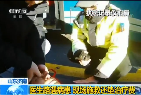 這位老人在街頭突發疾病暈倒後,兩名在附近值勤的交警迅速趕了過來,正在大夥不知所措之時,一位路過的醫生跑了過來,並對老人進行了現場救治。