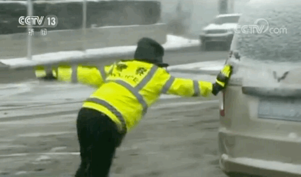 同樣在網上熱傳的,還有一段“交警跪地掃雪”的視頻。22號,遼寧省大連市降下大雪。在鞍山路有一段斜坡又長又陡,執勤交警吳玉琳為了幫助車輛脫困,跪地徒手掃雪。