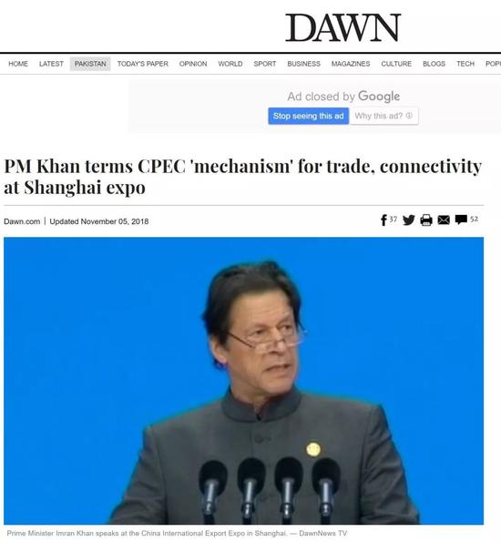 進博會是這兩天巴基斯坦媒體重點報道的話題。巴基斯坦《黎明報》網站5日刊發題為《總理伊姆蘭·汗在上海進博會上將“中巴經濟走廊”定義為貿易與聯通的“機制”》的文章説, 中國舉辦進博會向外界展現了中國向世界開放市場的積極努力,中國無疑是全球發展的積極力量。