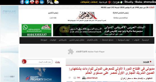 埃及《金字塔報》6日刊文稱《馬德布利在上海進口博覽會開幕式致辭:中國是埃及第一大貿易夥伴》。