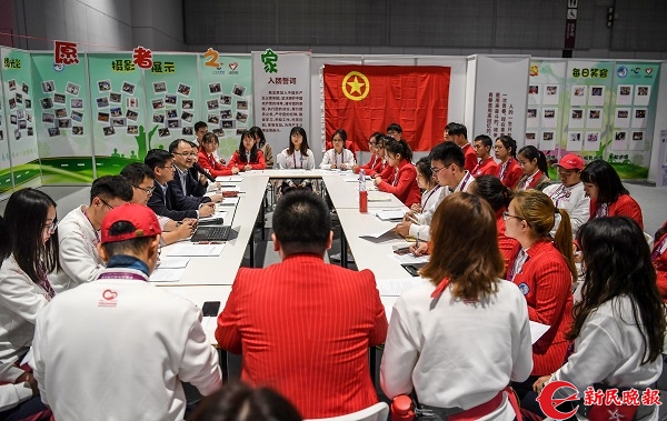 圖説:小葉子志願者中午參加“我在服務進博中成長”主題黨團組織生活