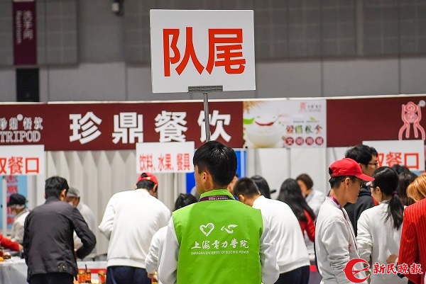 “您留意腳下地毯的顏色,就不會找錯展館了”“您直接往前走,拐個彎就到,這樣走最近”……手拿地圖、時不時小跑幾步將參觀者引到正確的方向,在3.1館和4.1館的幾個主通道旁,上海大學中文系研二女生蘇靜如和她的70余名小夥伴,從上崗的一刻開始幾乎一刻不停。原本只需原地不動的“指路崗”,一天下來就因為這一次次的“小跑幾步”,竟然也達到了28000多步。