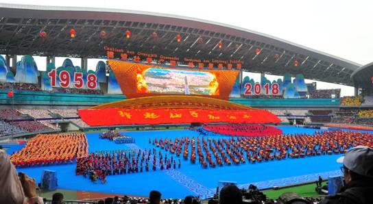 在廣西體育中心,偌大的主體育場被裝飾成美輪美奐的舞臺。在主席臺正對面,“1958”和“2018”兩個數字引人注目。可以容納6萬人的觀眾席滿滿噹噹。