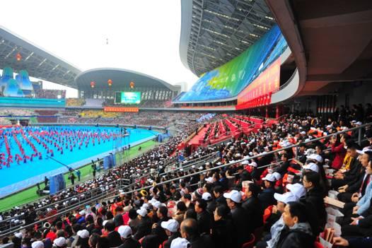 在現場,觀眾被八桂兒女奮進新時代的豪情壯志深深感染,不時響起雷鳴般的掌聲,體育場成了歡樂的海洋。