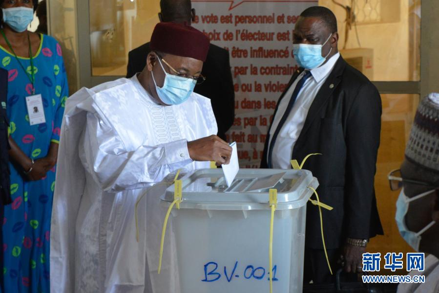 2月21日,尼日總統伊素福(前)在尼亞美的一處投票站投票。新華社發