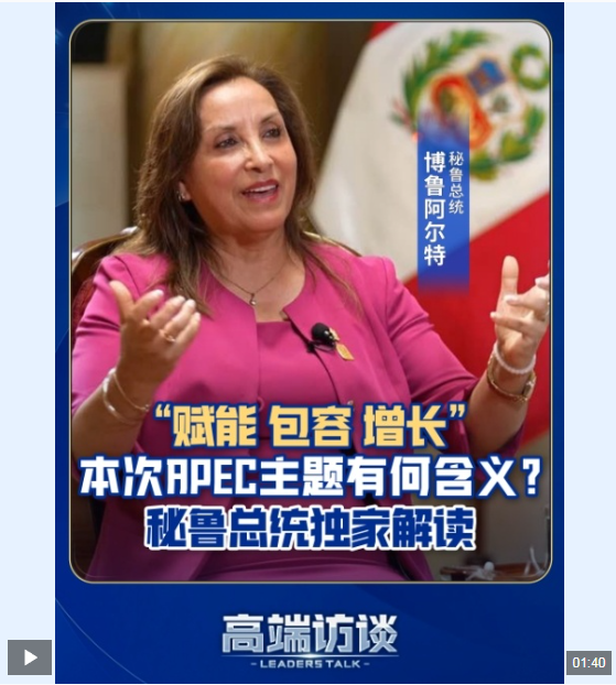 “賦能、包容、增長”是本次亞太經合組織領導人非正式會議的主題,為何選擇這三個議題?來聽聽秘魯總統博魯阿爾特在接受總臺《高端訪談》專訪時如何解讀!