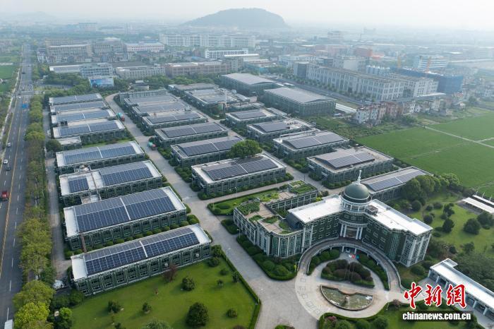 8月4日,梅林村的低碳工廠,企業年發電550萬千瓦時,減碳3069噸。當日,“活力中國調研行”浙江主題採訪團走進位於浙江杭州的梅林村,該村作為“千萬工程”源起地之一,將新能源光伏項目作為推動鄉村振興和生態文明建設的關鍵突破口,從讓村民形成低碳習慣到發展綠色産業,正走出一條獨特的綠色發展之路。(無人機照片)中新社記者 吳君毅 攝