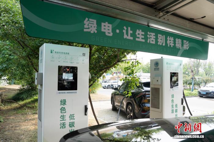 8月4日,頂部安裝光伏面板並配備充電樁的梅林村公共停車場。當日,“活力中國調研行”浙江主題採訪團走進位於浙江杭州的梅林村,該村作為“千萬工程”源起地之一,將新能源光伏項目作為推動鄉村振興和生態文明建設的關鍵突破口,從讓村民形成低碳習慣到發展綠色産業,正走出一條獨特的綠色發展之路。(無人機照片)中新社記者 吳君毅 攝