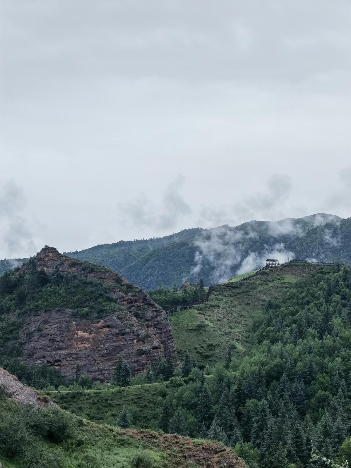 雨後的坎布拉雲霧繚繞;在陽光的照射下,遠遠望去,不少山體閃耀著“綠絲絨”般的光澤。