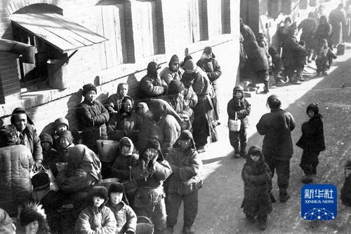 排隊等待施粥的瀋陽貧民。日本佔領時期的東北人民掙紮在饑餓線上。