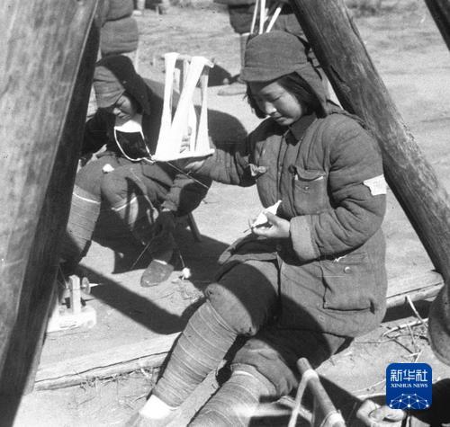 1942年,延安女幹部在紡線。 鄭景康 攝