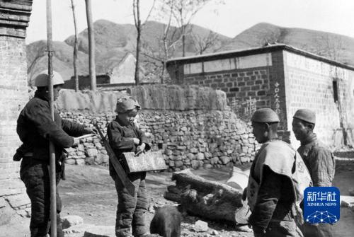 抗日戰爭時期,兒童團員在村口路邊站崗放哨,保衛根據地。石少華 攝