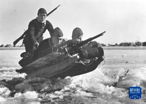 1944年冬天,石少華第五次踏上白洋淀。當時正值隆冬時節,展現在他眼前的是,雁翎隊員們正在冰天雪地裏駕冰橋、築冰堆,乘著雪橇飛馳在冰面上伏擊敵人。石少華情不自禁地舉起相機,將雁翎隊員行軍、進攻、伏擊、防禦等訓練場面一一收入鏡頭。《冰上輕騎》《土坦克》等作品就是在這一時期拍攝的。