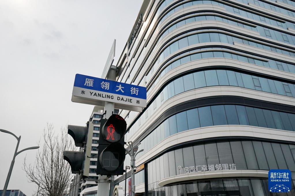 雁翎大街路牌(2025年3月15日攝)。新華社記者 牟宇 攝