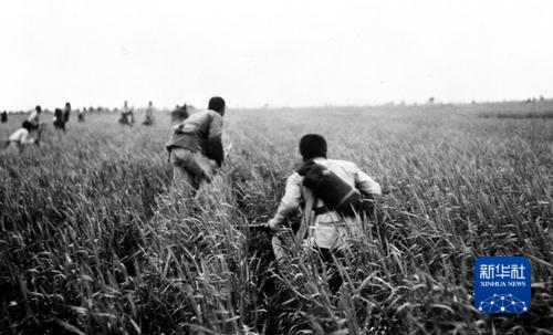 八路軍在冀中麥田進行伏擊戰。董青 攝