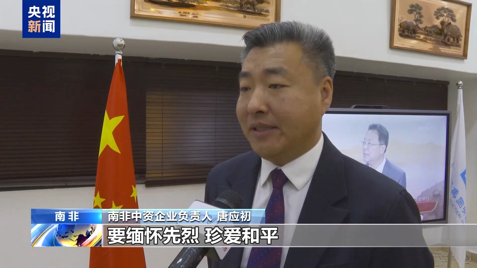 南非中資企業負責人 唐應初:歷史告訴我們要緬懷先烈、珍愛和平。只有團結才能勝利,只有合作才能共贏。作為海外建設者,今天我們胸懷祖國,奮戰一線。用實際行動證明,中國建設者攻堅克難、敢打必勝。