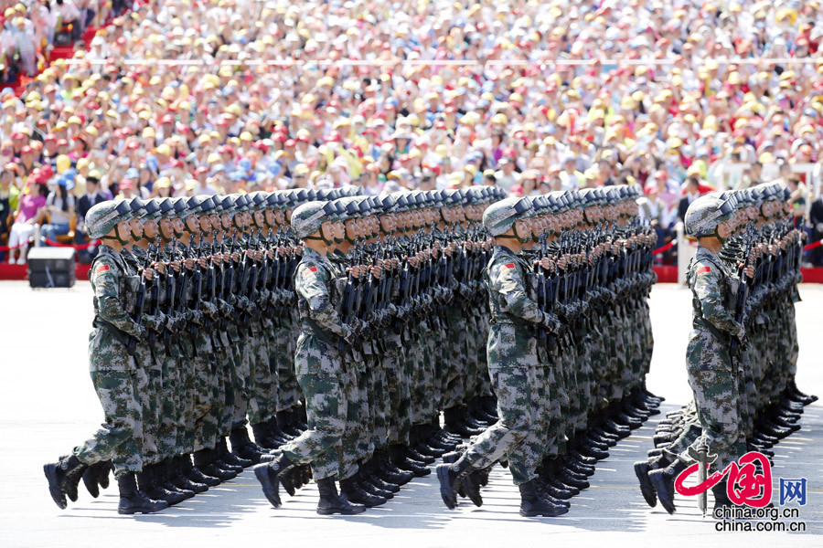 9月3日,中國人民抗日戰爭暨世界反法西斯戰爭勝利70週年紀念大會在北京隆重舉行。這是百團大戰“白刃格鬥英雄連”英模部隊方隊。中國網記者 楊佳攝影