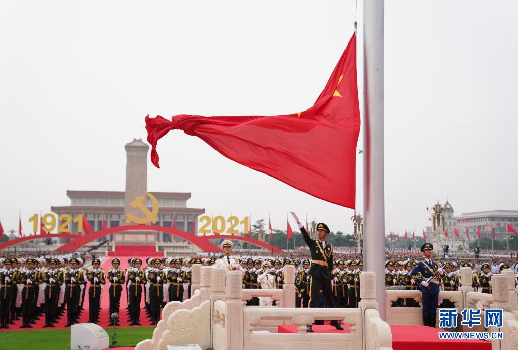 7月1日上午,慶祝中國共産黨成立100週年大會在北京天安門廣場隆重舉行。這是升國旗儀式。