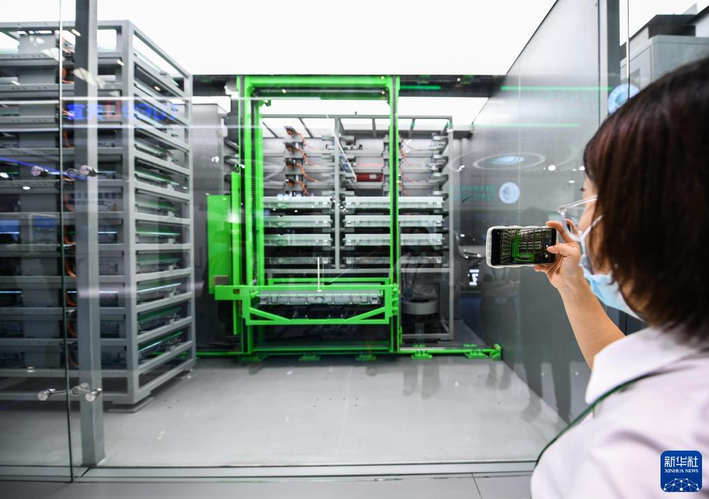 7月21日,在2022世界動力電池大會綠色低碳出行展覽會上,參觀者用手機錄製新能源汽車換電過程。
