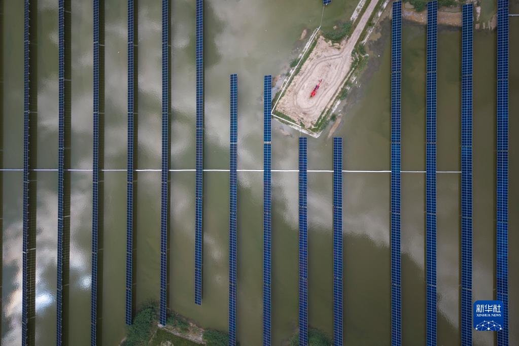 這是7月21日拍攝的大慶油田星火水面光伏項目(無人機照片)。