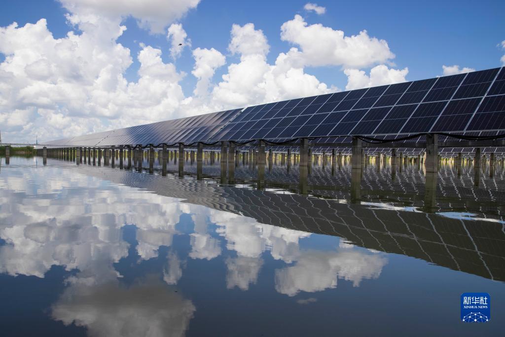 7月21日拍攝的大慶油田星火水面光伏示範工程現場。
