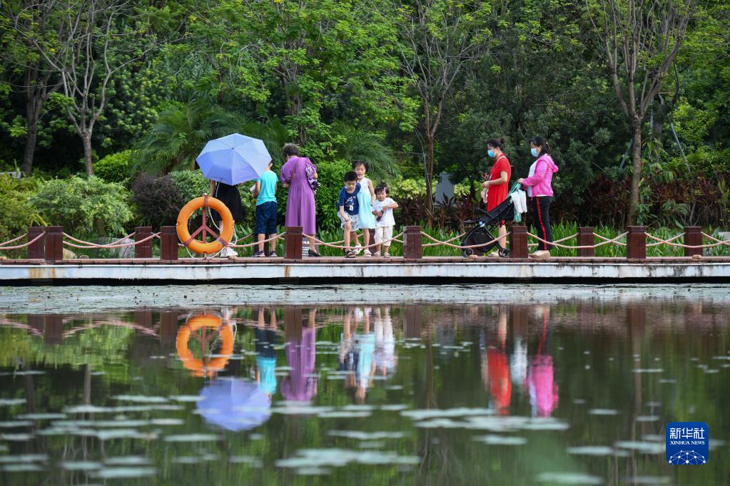市民在茅洲河畔的燕羅濕地公園裏遛彎(2022年7月8日攝)。
