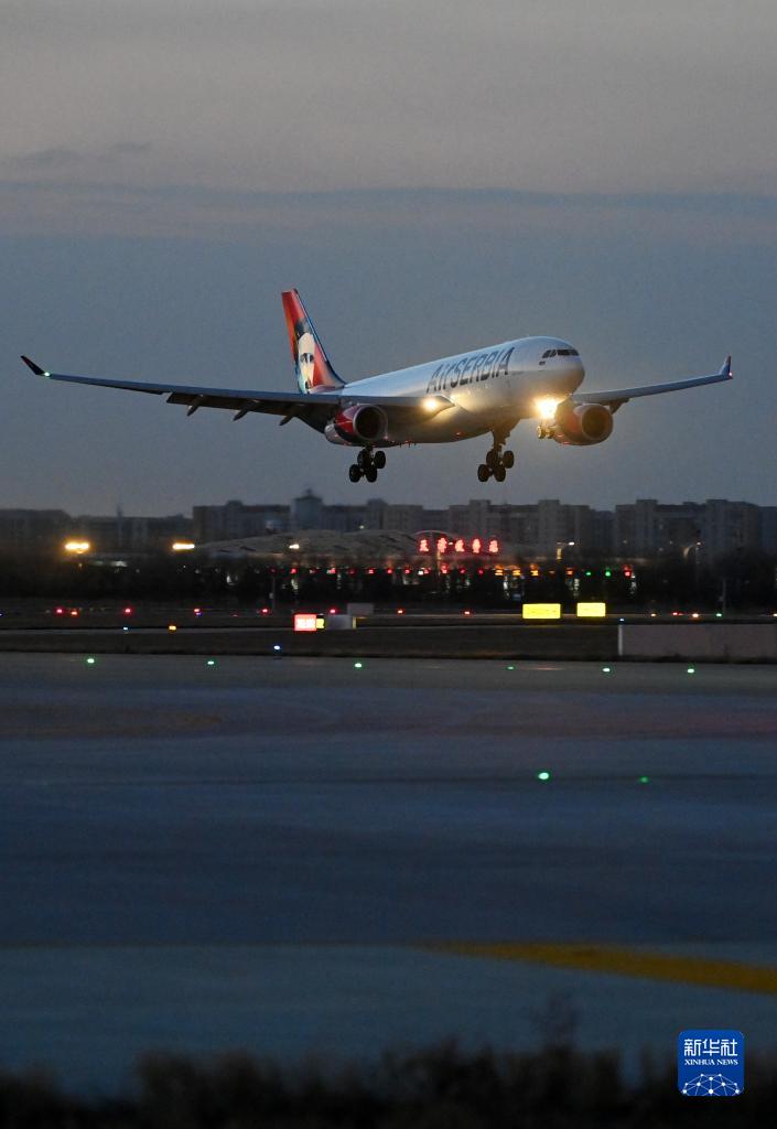 當日,搭載約170名旅客的JU702航班在天津濱海國際機場順利落地,標誌著“貝爾格萊德-天津”直飛航線正式開通。