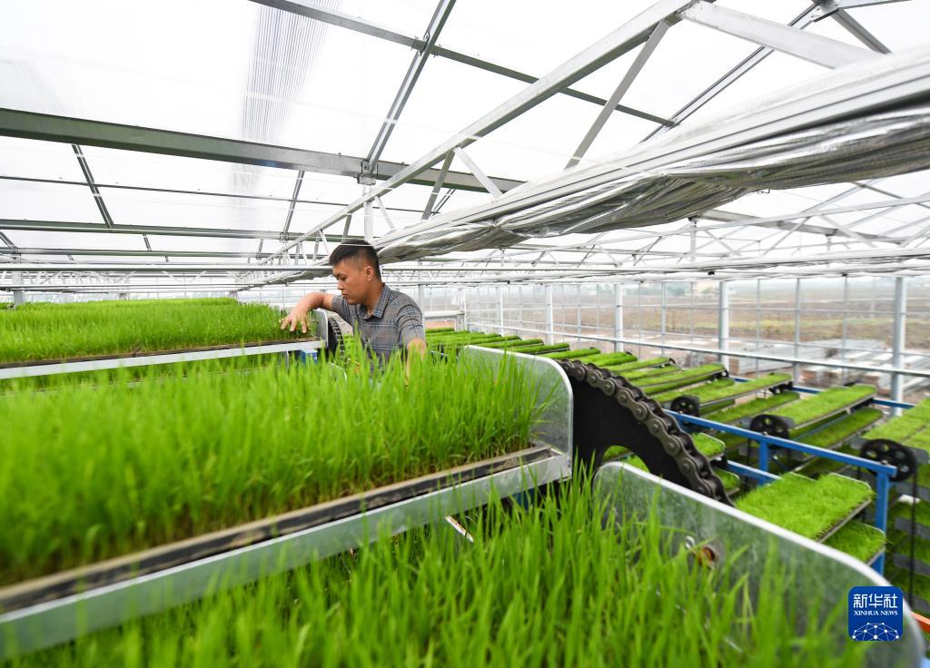 位於成都平原的四川省眉山市彭山區,近年來加快建設數智水稻示範基地,通過引進或定制迴圈式智慧育秧機、智慧水稻育秧播種流水線、秧盤智慧傳輸帶等設備,提升春耕科技含量,提高生産效率。
