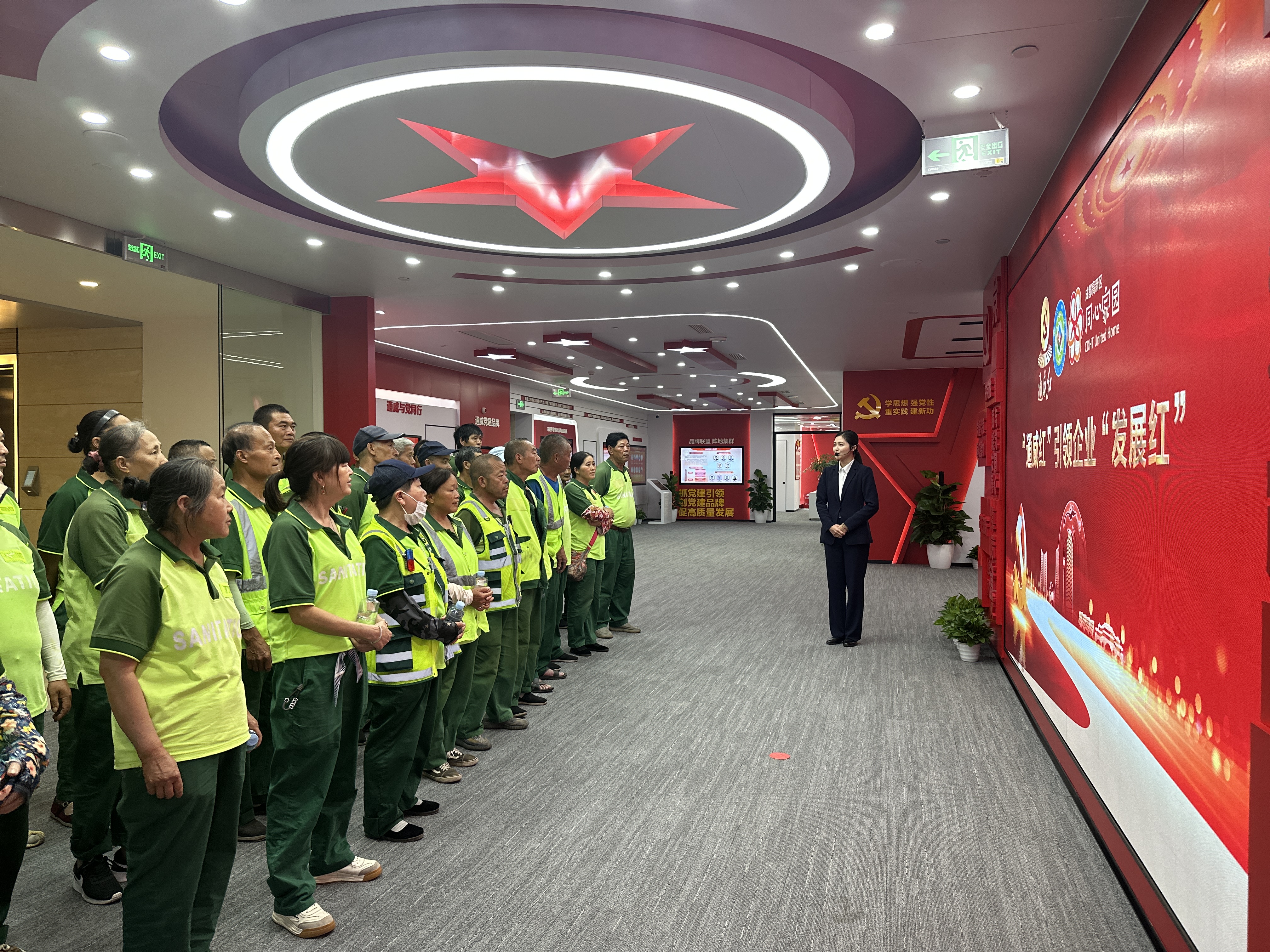 黨建賦能,架起雙向奔赴“連心橋”,活動當天,環衛工人們在通威集團講解員的帶領下,首站走進企業紅色黨建陣地。通過一幅幅圖片、一段段影像,大家深入了解通威集團“黨建強企”的發展理念,以及企業在鄉村振興、綠色發展中的社會責任實踐。“沒想到大企業的黨建陣地這麼接地氣,還能和企業發展結合得這麼緊密!”從事環衛工作15年的李大姐感慨道。月牙湖社區黨委書記陳立容表示:“我們希望通過黨建聯建平臺,讓新就業群體感受到黨組織的關懷,也推動轄區企業與社會治理的深度融合。”科技與公益同行,打開綠色發展新視野。