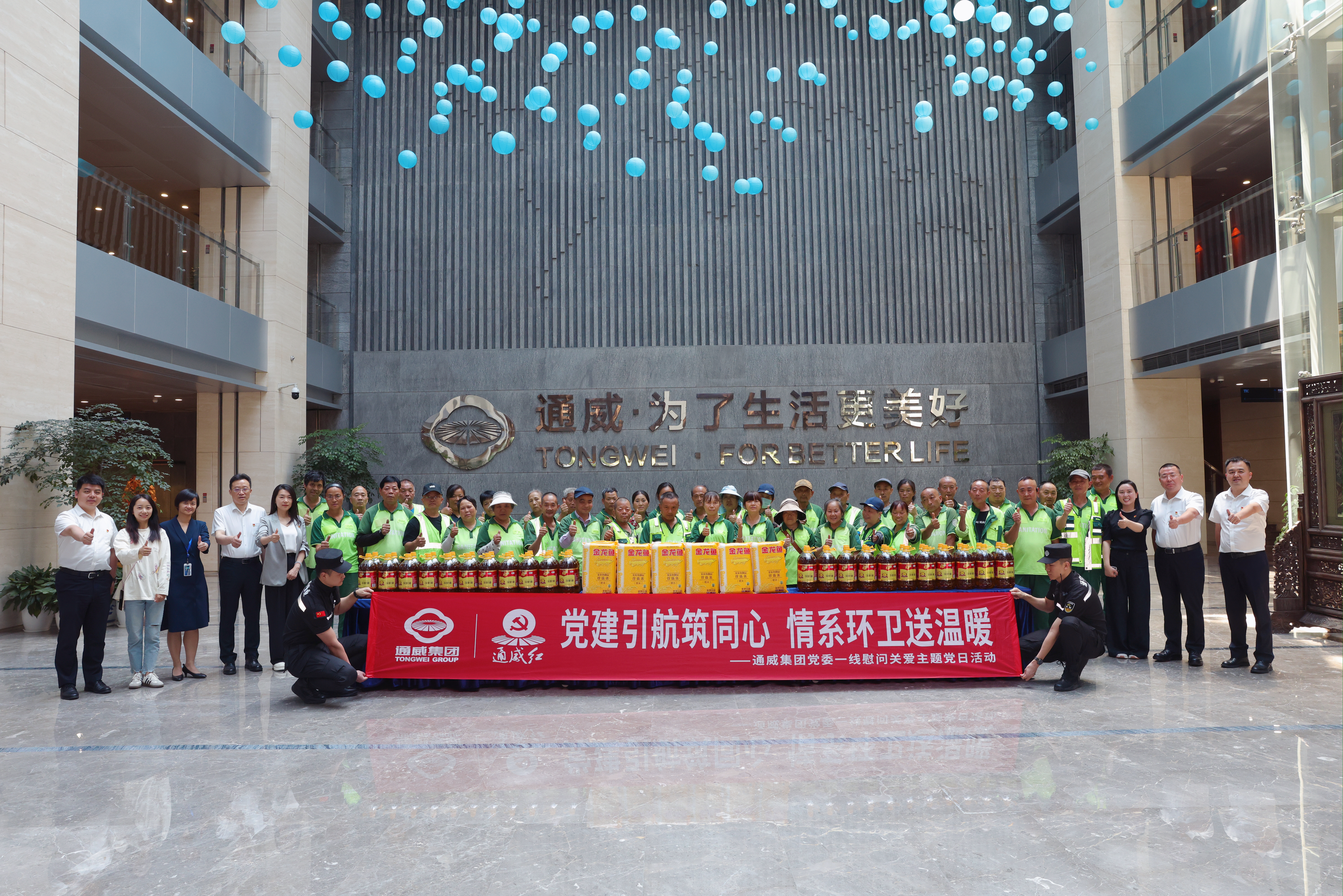 在通威産業展廳,環衛工人們近距離接觸了“漁光一體”智慧養殖、高效太陽能光伏組件等創新成果。當得知通威光伏電站每年可為數百萬家庭輸送清潔能源時,現場響起陣陣掌聲。“以前只知道掃馬路是為城市美容,今天發現發展新能源也是守護城市未來。”環衛領隊在參觀後深受觸動。通威集團黨委書記黃其剛介紹:“我們不僅要做綠色技術的引領者,更要成為社會責任的踐行者。讓環衛工人走進企業,正是希望用科技的溫度致敬平凡勞動者的奉獻。”關愛做實做細,傳遞城市人文關懷。活動尾聲,月牙湖社區黨委與通威集團黨委共同為環衛工人們送上食用油、大米等慰問品。