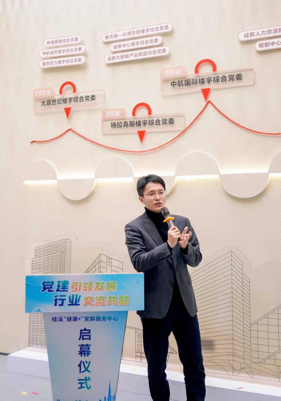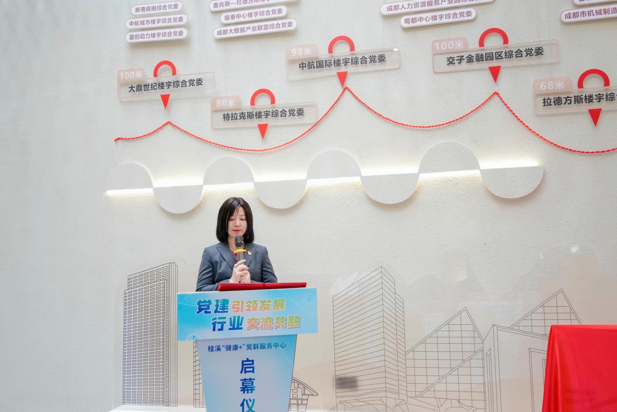 啟動儀式上,桂溪街道黨工委主要負責同志表示:“‘健康+’黨群服務中心是黨建引領基層服務創新的重要嘗試,既突出高新區樓宇經濟特色,又契合桂溪街道‘紅色天際線’的核心內涵,街道以‘一樓一特色、一企一品牌’為目標,立足大健康服務,希望通過這一陣地,將優質醫療資源下沉到企業和社區,推動樓宇黨建活動、陣地、健康服務等要素共用互補,以實現黨建引領與民營經濟發展同頻共振。”