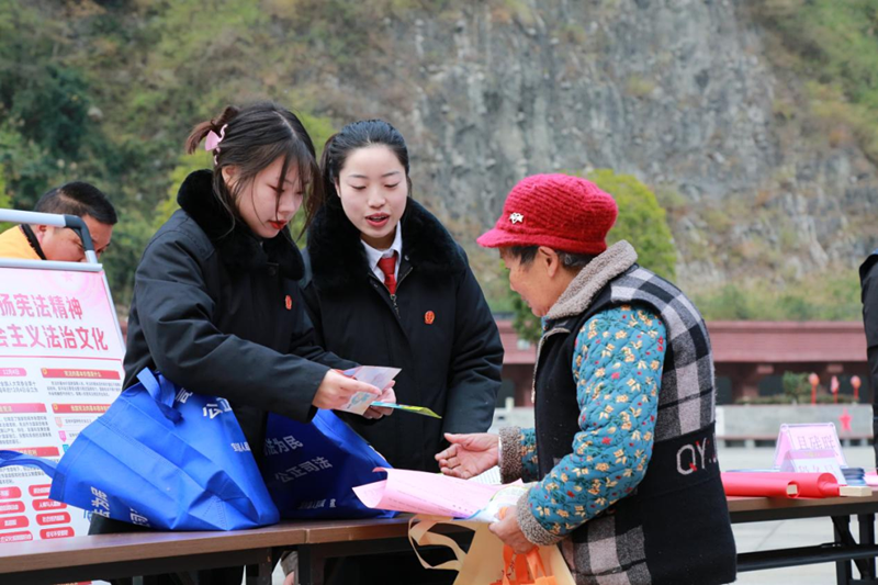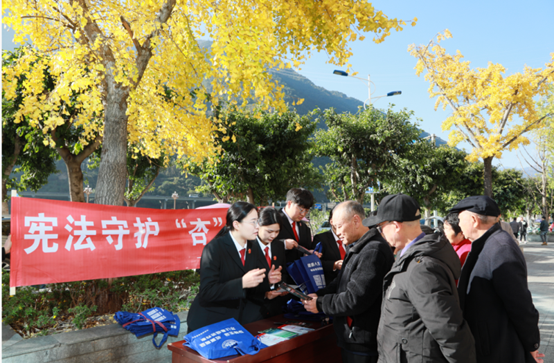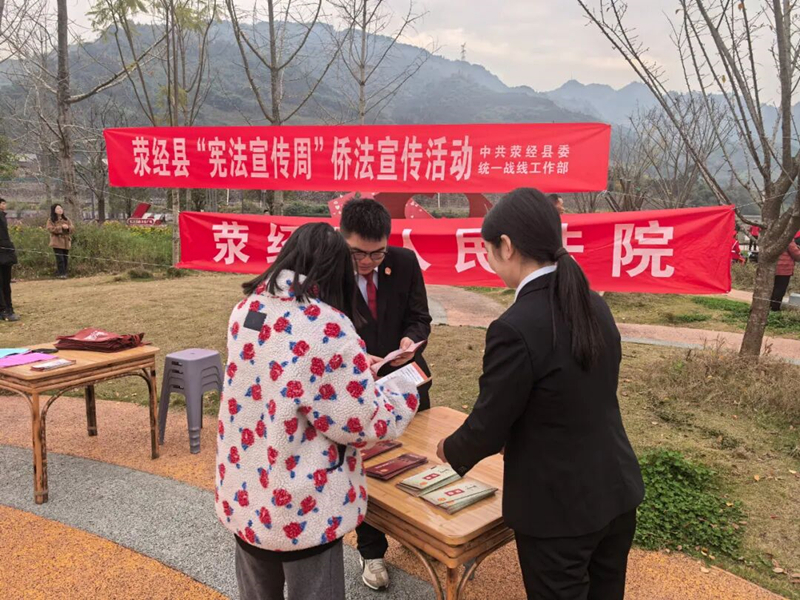 12月4日,滎經縣法院組織幹警走進滎經縣第十二個國家憲法日主題宣傳活動現場開展憲法日普法宣傳活動。活動現場,法院幹警向群眾解讀憲法精神、通過發放宣傳手冊等形式引導人民群眾學法、用法、守法。