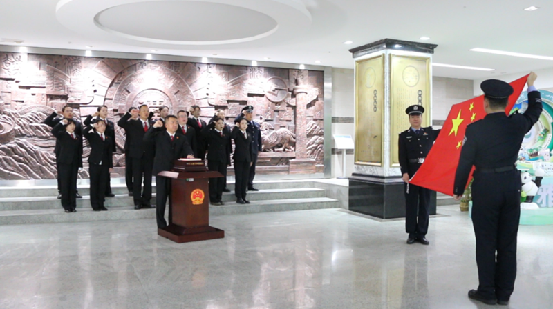 12月4日,雅安中院舉行憲法宣誓儀式,雅安中院黨組書記、院長秦志遠領誓,中院黨組成員、副院長康友波,中院政治部主任陳昊,部分政法幹警參加宣誓。