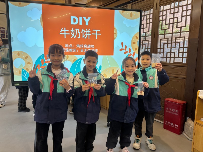 勞動實踐區同樣熱鬧。學生們在老師指導下編織杯墊、烘焙餅乾,從稱量配料到控制烤箱溫度,體驗完整的勞動流程。“原來做飯也需要這麼多科學知識!”不少學生感慨道。