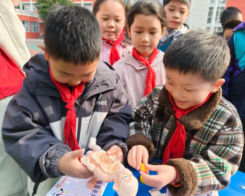 活動中,孩子們手持《職業體驗護照》,在志願者和老師的引導下完成挑戰、收集印章、兌換獎品。在快遞配送區,孩子們化身“智慧配送小能手”,學習包裹分揀和精準配送;在醫療服務區,孩子們扮演“健康小衛士”,拼裝人體模型認識人體結構;在交通安全區,孩子們擔任“交通信號大師”,學習交通手勢和標識;在外賣配送區,他們成為“極速送達員”,模擬完整的送餐流程。