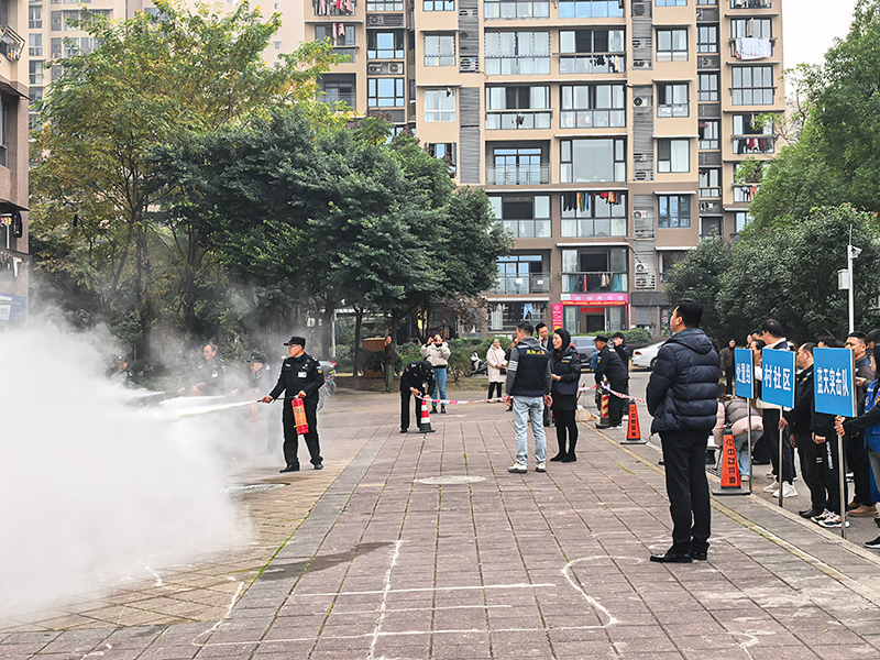 安保隊伍快速分為兩組:一組全力撲救初期火災,另一組手持擴音器逐層引導居民,按照“濕毛巾捂口鼻、彎腰低姿前行”的科學逃生方法,有序疏散至小區空曠安全區域。