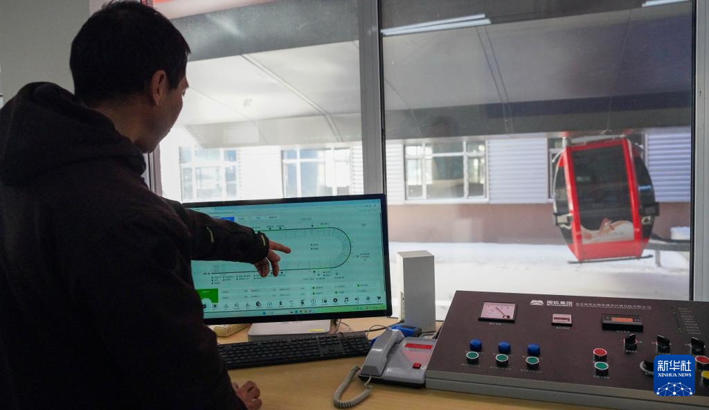 12月2日,吉林市北大湖滑雪度假區纜車站工作人員使用智慧化裝備操作纜車運作。新華社記者 顏麟蘊 攝