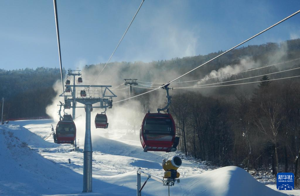 這是12月2日在吉林市北大湖滑雪度假區拍攝的由北京起重運輸機械設計研究院和徐州天馬索道纜車設備有限公司共同研發生産的纜車。據介紹,北大湖滑雪度假區的纜車國産化達90%以上。新華社記者 顏麟蘊 攝