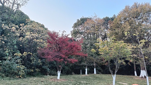 踏入景區,倣若步入夢幻之境。珍稀植物或成片簇擁,或獨自臨建於天地之間。修長樹榦撐起舒展枝丫,將天空分割成一塊塊色彩斑斕的“拼圖”。紅楓點綴其中,似靈動的精靈,以艷麗葉色與周邊樹木的明黃、翠綠交織,形成錯落有致的色彩梯隊。在同一枝頭,金黃與緋紅漸變交替,“半熟”的密林韻味獨特,展現出大自然的奇妙筆觸。