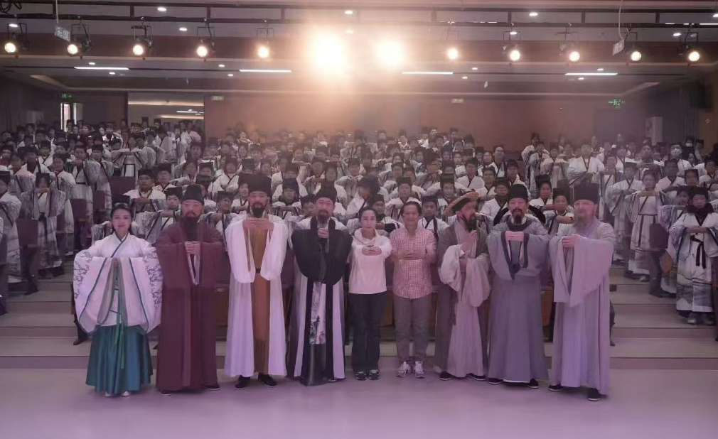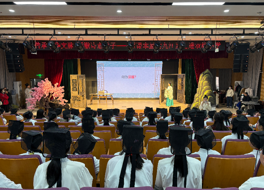 同學們頭戴學子帽,身穿學子服,在小劇場裏開啟了一場跨越千年的文化之旅。活動以別開生面的形式,將靜態的課本知識與動態的舞臺藝術相結合,帶師生們感受了一場文化盛宴。