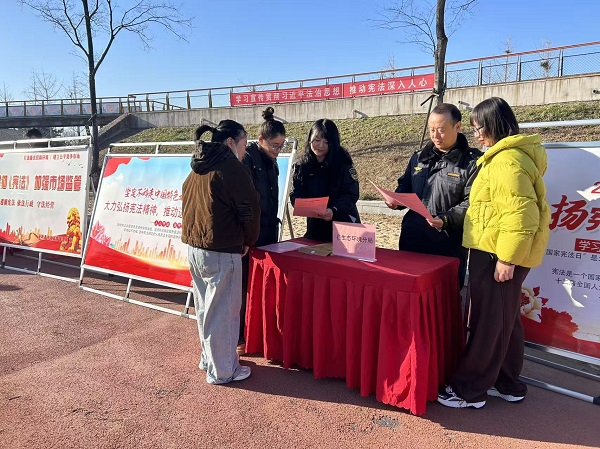 在航空運動公園中園憲法日集中活動現場,生態環境宣傳點位前人頭攢動。工作人員通過展示普法展板,向群眾普及憲法賦予的環境監督權,結合秸稈禁燒、水源保護等民生話題講解法律知識。涵蓋文明生活、污染舉報等實用內容,讓大家深入明晰環保義務與維權途徑。此次活動累計發放宣傳手冊100余份,解答群眾諮詢60余人次,實現普法宣傳“接地氣、入人心”。