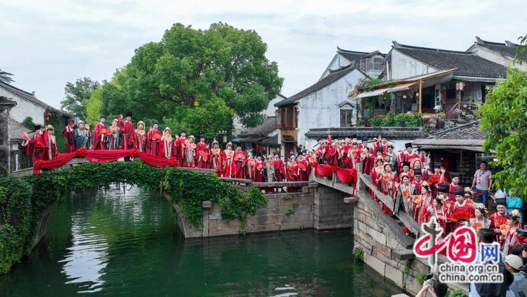 5月17日,周莊古鎮化身“江南愛情地標”,“愛在鹿城·戀上昆山”2025年水鄉集體婚禮暨昆山市婚姻家庭服務指導中心項目發佈儀式在此舉行。30對新人身著宋制華服,以“水為媒、橋為證”的浪漫形式,讓千年水鄉見證新時代婚俗新風。
