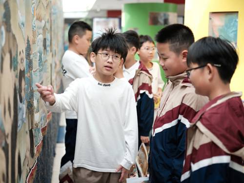 小朋友們在唐卡展示區討論。圖源:溫度新聞